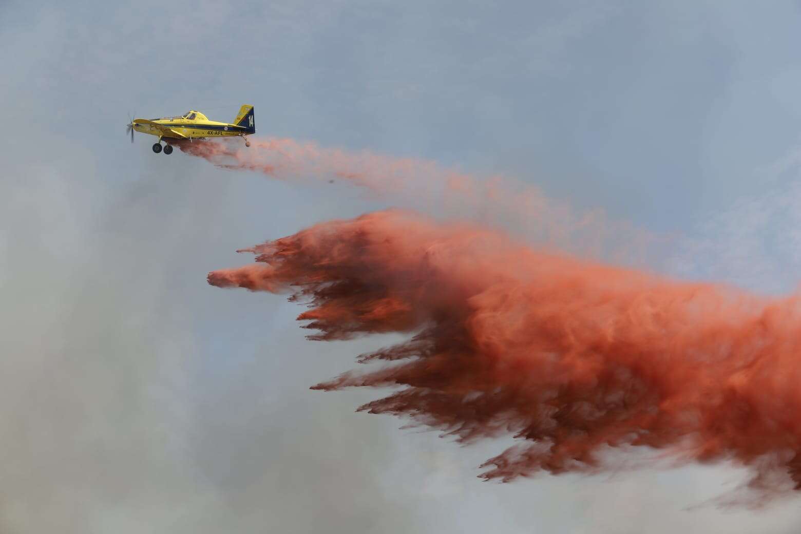 מטוס כיבוי מעל השריפה בנוף הגליל // צילום: גיל אליהו - ג'יני