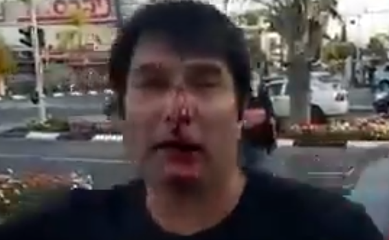 "באתי לתעד הפגנה. הם קיללו אותי וירקו עליי. אחד מהם שם לי בפנים את הסמטרוט השחור שהחזיק עם מקל ואז הזתתי אותו והוא פשוט נגח בפנים שלי. השוטרים לקחו את המחבל השמאלני ואני לא התפניתי לבית חולים כי קודם הלכתי לתחנת המשטרה בנס ציונה להגיש תלונה נגד הביריון", אמר רן כרמי בוזגלו.