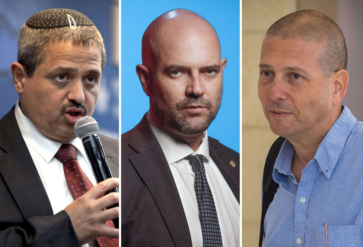 גיא ניר, אמיר אוחנה, רוני אלשיך // צילומים: נעם ריבקין פנטון, גדעון מרקוביץ', פיני סילוק // תנ"צ גיא ניר, השר אמיר אוחנה, והמפכ"ל לשעבר רוני אלשיך