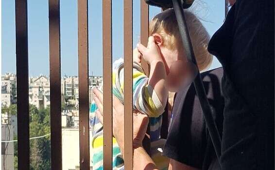 בן שנה נתקע עם ראשו מחוץ למרפסת הקומה ה-5 // צילום: י.ר ובנצי ליזרוביץ -קול חי