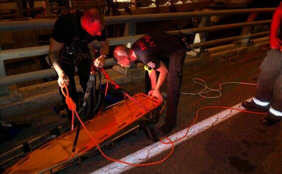 צילום: כבאות והצלה מחוז חוף // פעולות החילוץ של רוכב האופנוע לפנות בוקר