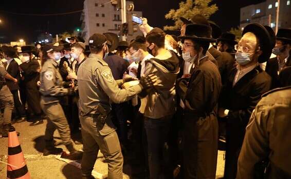 עיקר הסערה במגזר החרדי הירושלמי התמקדה אתמול בתיעוד המקומם של אותו שוטר בהפגנה שברוממה במוצאי שבת, כשהוא מכה בפתאומיות מפגין שהעיר לו על כך שלא עטה מסיכה.