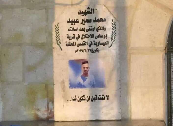 על לוחות הזיכרון נכתב "השאהיד מוחמד סמיר עובייד שנורה ע״י כוחות הכיבוש באל עיסאוויה בירושלים הכבושה".