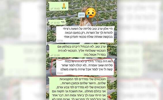 "היי אלון, סליחה על השעה. רציתי להודות לך על השירות, רק בפעם הבאה בבקשה, כשאתה שולח טכנאי - תעדכן אותי", כתבה הלקוחה.