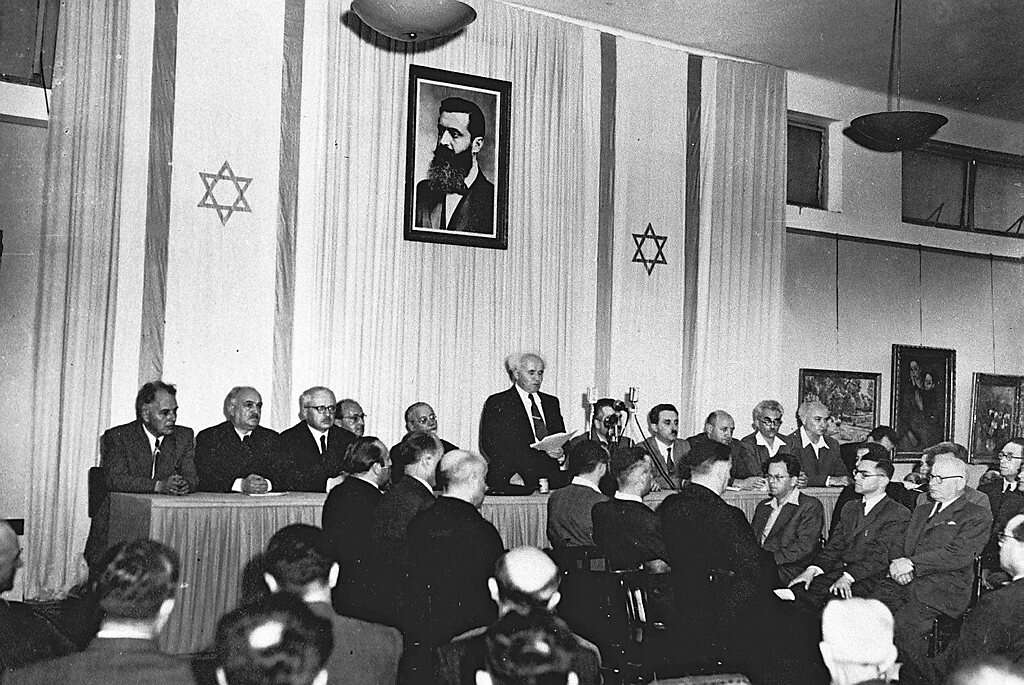 ב-14 במאי, ה' באייר תש"ח אחרי הצהריים, הכריז מנהיג היישוב היהודי וראש הממשלה הראשון של מדינת ישראל דוד בן גוריון בעיר תל אביב על הקמת המדינה. לכן, לכאורה, מבחינה היסטורית ומשפטית זכורים התאריכים ה' באייר וה-14 במאי כיום הקמתה של מדינת ישראל.