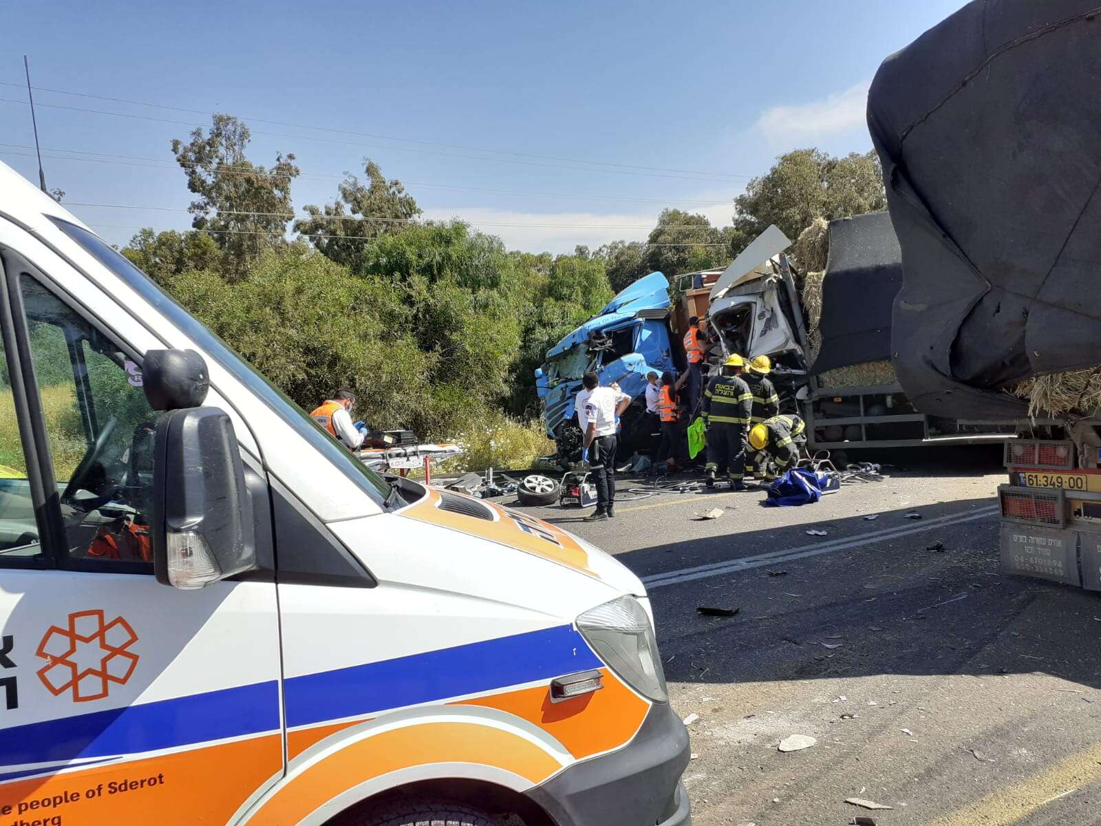 חובשים ופראמדיקים של מד"א שהגיעו לזירת התאונה נאלצו לקבוע את מותה של נהגת הרכב הפרטי והעניקו טיפול רפואי ומפנים לשלושה פצועים כבני 30 במצב קל-בינוני עם חבלות בבטן ובחזה. לאחר מכן, פונו הפצועים לבית החולים סורוקה בבאר שבע.