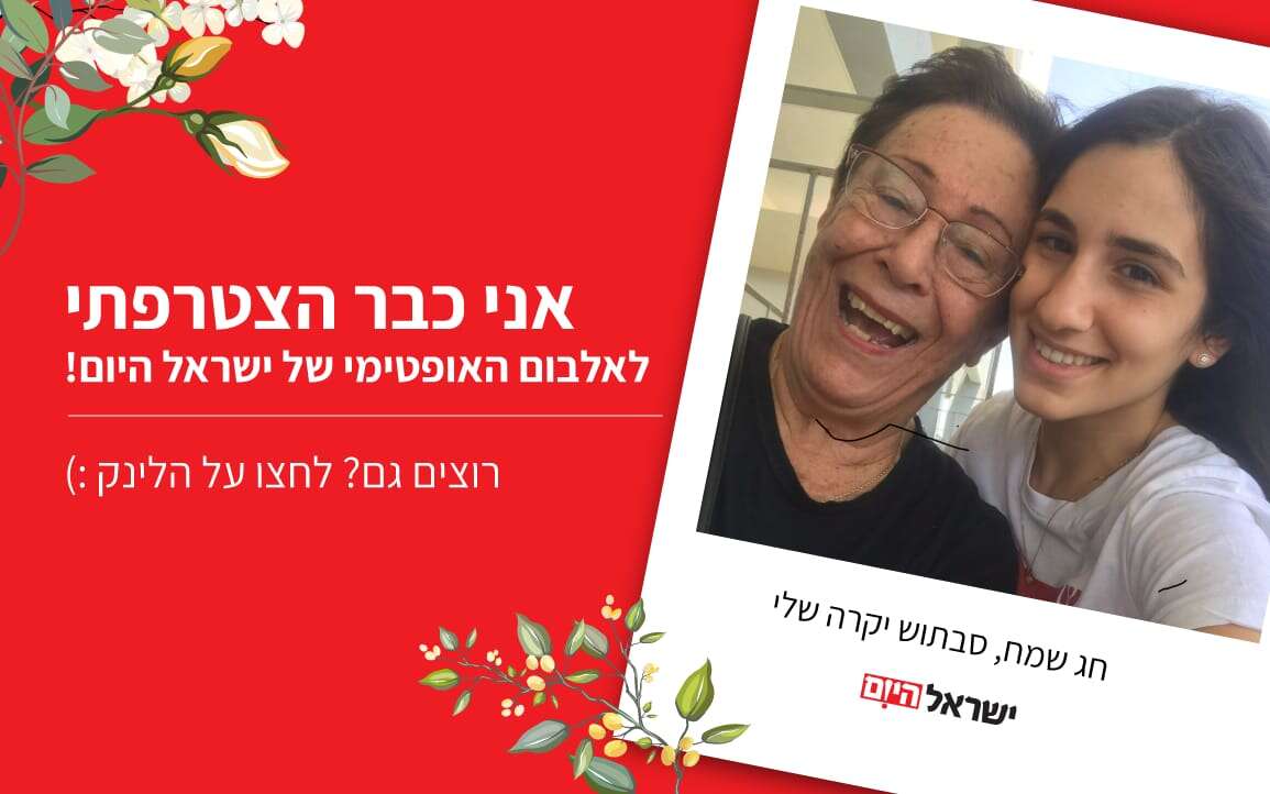 נכנסים לאתר ישראל היום ומעלים תמונה של עצמכם עם מסר אופטימי ואיחולי חג שמח, בריאות וביטחון לילדים, לנכדים, לחברים - ולכל עם ישראל!