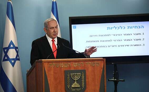ראש הממשלה בנימין נתניהו ושר האוצר משה כחלון נשאו הערב (שני) הצהרה מיוחדת כאשר במוקד ההגבלות החדשות וההנחיות למשק לקראת המשך המלחמה בנגיף הקורונה. "ליבנו עם איטליה, ספרד והקהילות היהודיות", פתח ראש הממשלה נתניהו את נאומו. "אצלנו ההדבקה נמוכה יותר. עם זאת, הערב אודיע על צעדים נוספים שאחנו נוקטים כדי להאט את ההתפשטות".