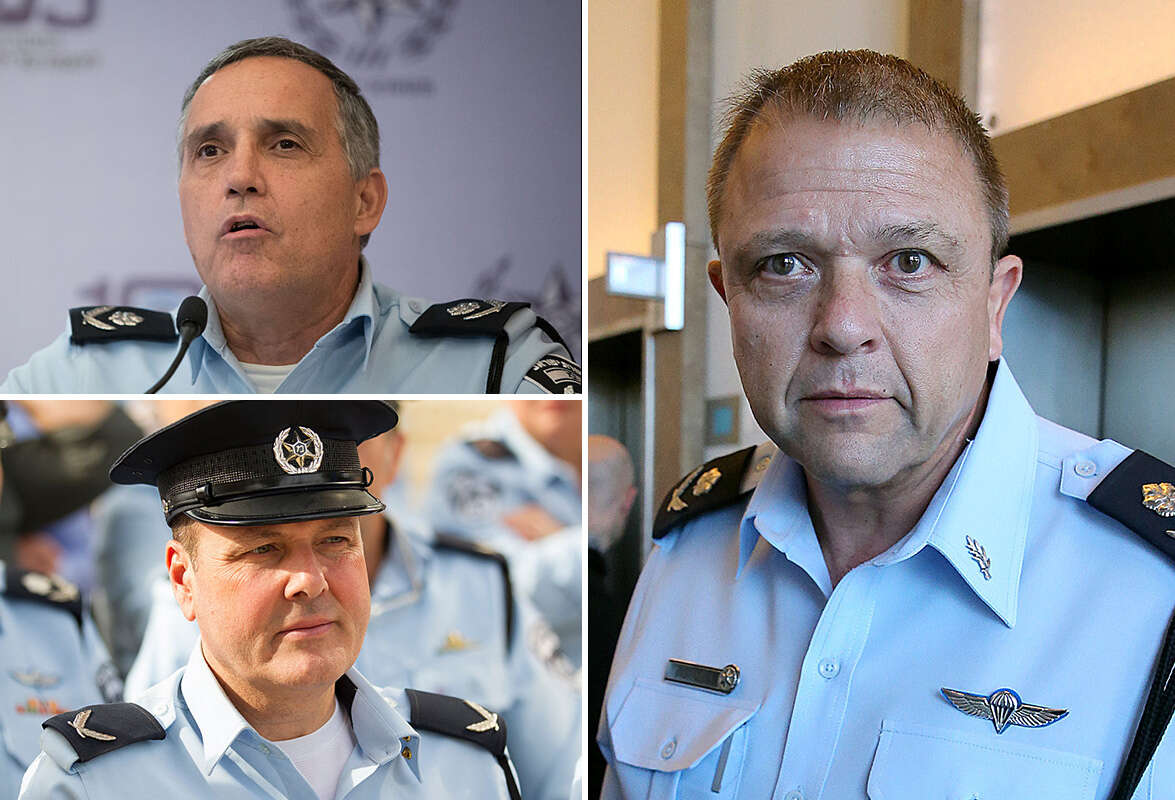 המפכ"ל מוטי כהן (מימין), ניצב סיסו (שמאל למעלה) וניצב אדרי (משמאל למטה)