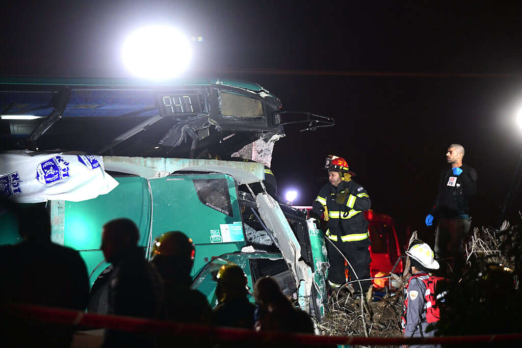 בתאונה הקטלנית ליד נתב"ג, נהרגו ארבעה בני אדם ו-15 נוספים נפצעו • רוב הפצועים שוחררו מבתי החולים • המשטרה תבדוק את הטלפון של הנהג • עדות משניות אחרי התאונה: "נפל גוש של בטון על האוטובוס"