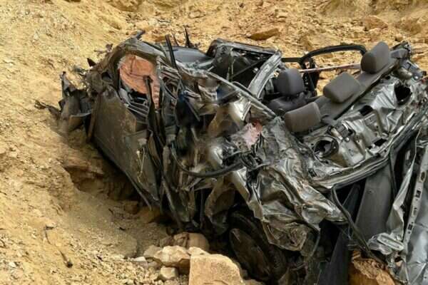 אדם ללא רוח חיים אותר ברכב שהתדרדר לתהום באזור כביש 40 ליד מצפה רמון. כוחות פועלים על מנת לחלץ את הגופה.