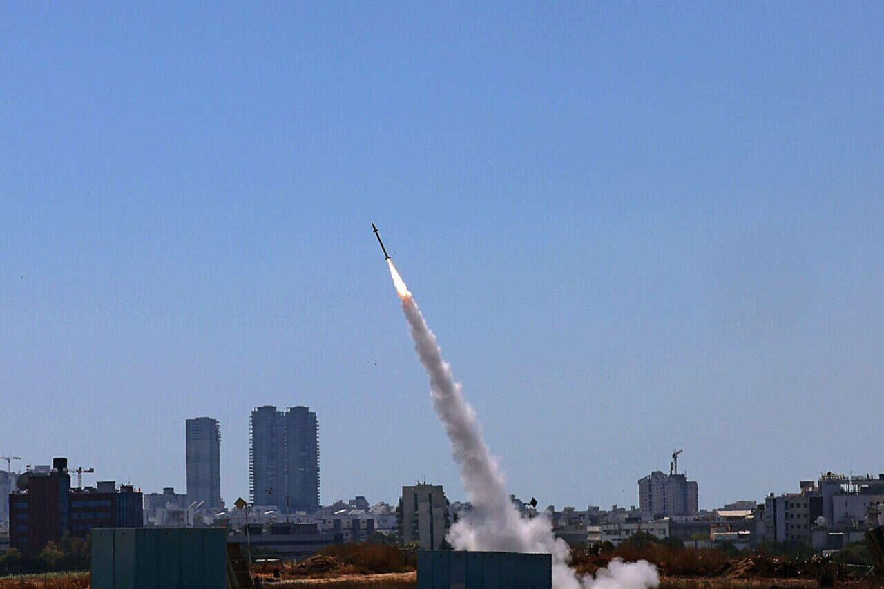 שיגור מיירט כיפת ברזל לעבר רקטות שנורו מעזה לישראל, צילום: איי.אף.פי.