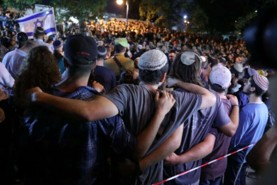 הנוכחים שרו שירי אבל במשך דקות ארוכות // צילום: אורן בן חקון