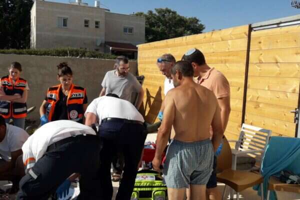 פרמדיק מד"א אייל זהבי, וחובש בכיר במד"א, דני רוטנברג, סיפרו: "כשהגענו למקום ראינו גבר כבן 30 שוכב בסמוך לשפת הבריכה שכונני מד"א מבצעים בו פעולות החייאה. המשכנו את הטיפול הרפואי שכלל מתן תרופות, הנשמות ועיסויים וכאשר מצבו התייצב מעט והדבר התאפשר העלינו אותו לניידת טיפול נמרץ ופינינו אותו תוך המשך טיפול רפואי מציל חיים לבית החולים כשמצבו קריטי".