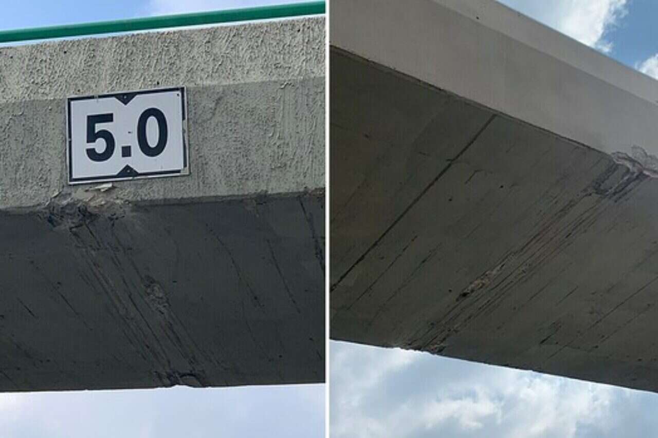הנזק שנגרם לגשר. נקבע שאין סכנה בטיחותית // צילום: דוברות המשטרה