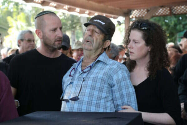 בעלה של דינה פורת ז"ל וילדיה בהלווייתה // צילום: גדעון מרקוביץ'