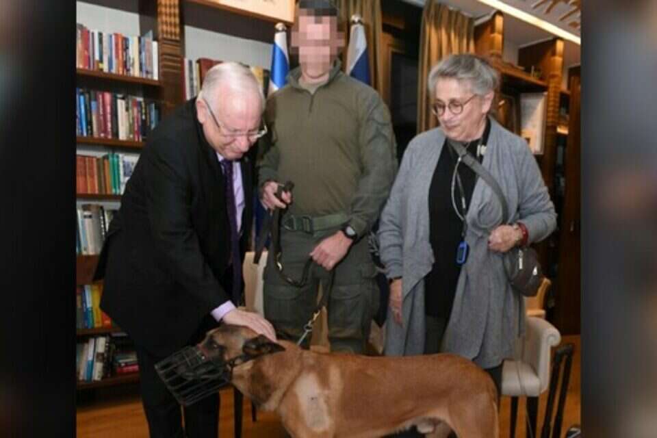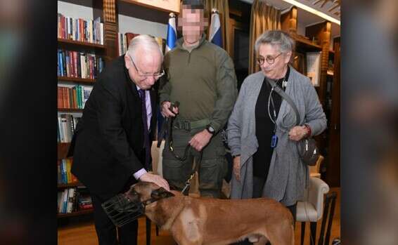 הנשיא ריבלין ו"רמבו" // צילום: מארק ניימן, לע"מ
