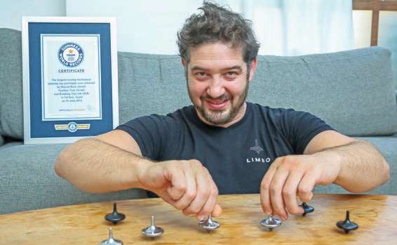 "הפסקנו את הסיבוב שלו אחרי 27 שעות כי זה הספיק לנו כדי לשבור את שיא גינס, אבל הוא כבר הגיע ליותר מ־40 שעות של סיבוב ברצף", אמר אתמול בועז אלקיים ממושב אלוני הבשן שבגולן, השותף בעסק שיזם את הגאדג'ט.