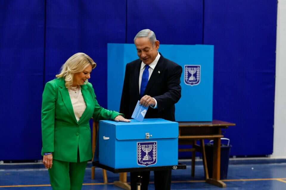ראש האופוזיציה בנימין נתניהו הצביע היום (שלישי), יחד עם רעייתו שרה, בקלפי בירושלים. לאחר ההצבעה הוא אמר: "אני מודאג, אבל בעזרת האנשים ששומעים אותנו - נסיים את היום בחיוך".