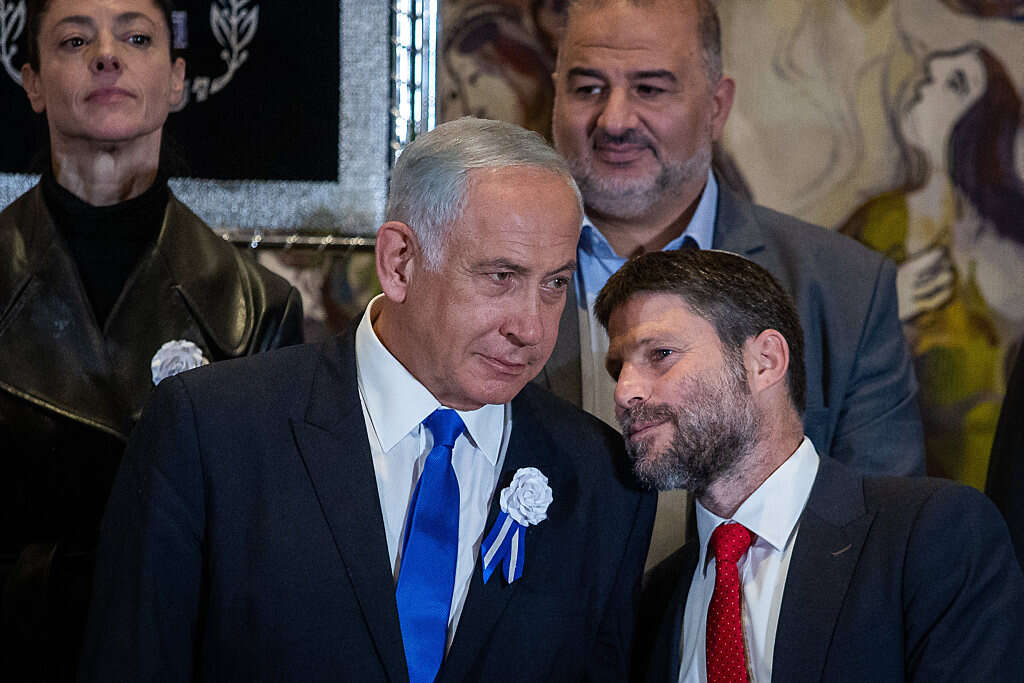 נתניהו וסמוטריץ' בהשבעת הכנסת | צילום: אורן בן חקון