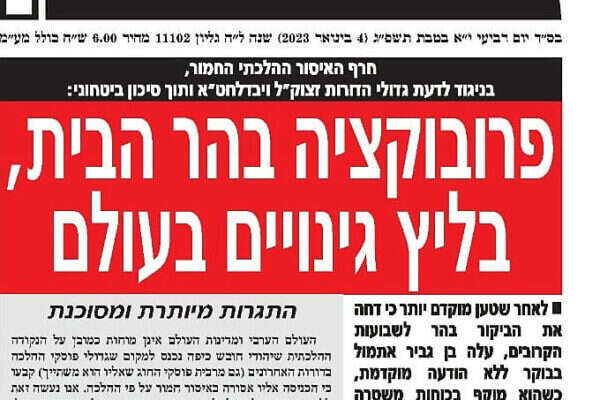 הכותרת הראשית של השער מתארת את המהלך של בן גביר כ"פרובקציה בהר הבית".