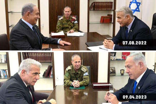 אי אפשר שלא לתהות לגבי הדימיון לתמונה מלפני פחות משנה, באוגוסט 2022. אז נתניהו, יו"ר האופוזיציה, הגיע לראש הממשלה דאז לפיד לישיבת עדכון. פרט למשרד שהוא אותו משרד גם המזכיר הצבאי הוא אותו מזכיר - אלוף אבי גיל.