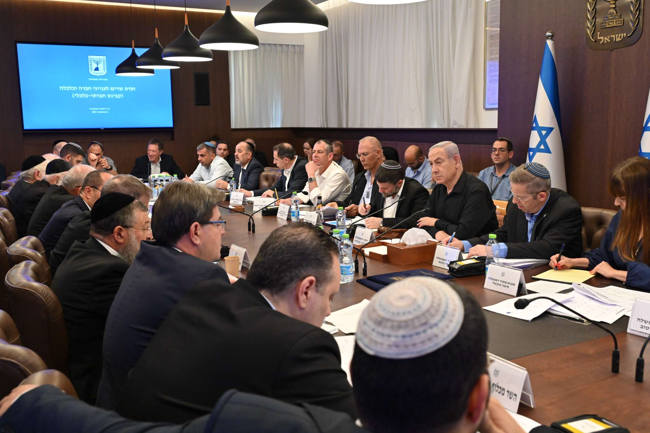 ישיבת הקבינט החברתי-כלכלי התקיימה היום (רביעי) בהשתתפות ראש הממשלה בנימין נתניהו ושר האוצר בצלאל סמוטריץ'. במהלך הקבינט נדונו ארבעה נושאים: מתווה שיפוי ארנונה למגורים בערים שפונו, עדכון על מתווה מענק לעובדים ולעסקים, מתווה מענק לעובדים בתחום הבניין והחקלאות והמלצת הקבינט החברתי-כלכלי לקבינט המדיני-בטחוני בנושא שגרת העסקת פלסטינים. בנוסף, השרים קיבלו סקירה מראש רשות החירום הלאומית יורם לרדו.