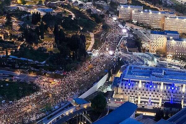 המונים השתתפו הערב (ראשון) בעצרת מחאה גדולה מול משכן הכנסת בירושלים. בעצרת נאמו שורת דוברים, בהם יו"ר האופוזיציה יאיר לפיד, הורים לנרצחים בטבח 7 באוקטובר ואנשים נוספים. בתוך כך, עשרות מפגינים חסמו לסירוגין את דרך בגין בבירה. מפגינה אחת נעצרה עקב שימוש באבוקות.