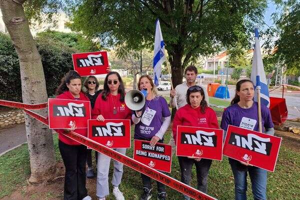 מפעילים לחץ: פעילות התנועות בונות אלטרנטיבה ואמהות בחזית הפגינו היום (שלישי) מחוץ לבתיהם של השרים בני גנץ וגדי איזנקוט, בדרישה לעסקת חטופים וליציאה שלהם מהממשלה.