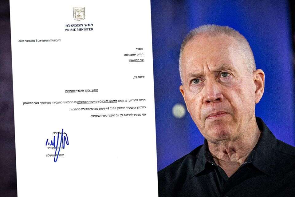 במכתב הפיטורין שנשלח מנתניהו לגלנט, נכתב: "החלטתי להעבירך מכהונתך כשר הביטחון. כהונתך תפסק בתוך 48 שעות ממועד מסירת מכתב זה. אני מבקש להודות לך על פועלך כשר הביטחון".