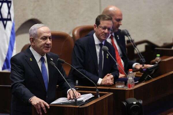בנאומו, יישר נתניהו קו עם ארה"ב, וויטקוף וקושנר, ולאחר שטען שהמלחמה לא תמה, דווקא ציין היום כי המלחמה הסתיימה. בתום 24 חודשים של מלחמה הגענו לאיגרא רמה, לפסגת הלבנון ולהשבת חטופינו". המשימה טרם הושלמה בעזה נותרו 16 חטופים חללים מהם שני אזרחים זרים ו-14 חללים ישראלים שאת שמות כולם מנה ראש הממשלה". בכנסת נשמעו קריאות ביניים בטענה כי נתניהו טעה בשמו של איתי חן וקרא לו איתן חן.
