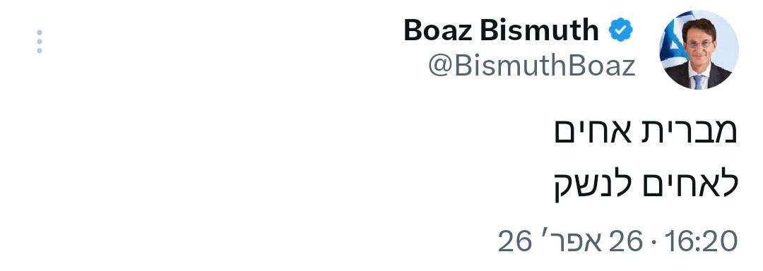 ח״כ בועז ביסמוט הסתפק במסר קצר: "מברית אחים לאחים לנשק".