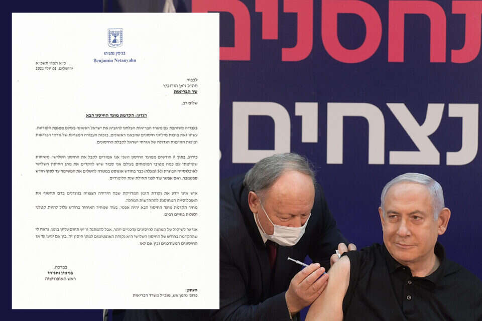 נתניהו לשר הבריאות הורוביץ: "להקדים את המנה השלישית של חיסון הקורונה לחודש הבא"