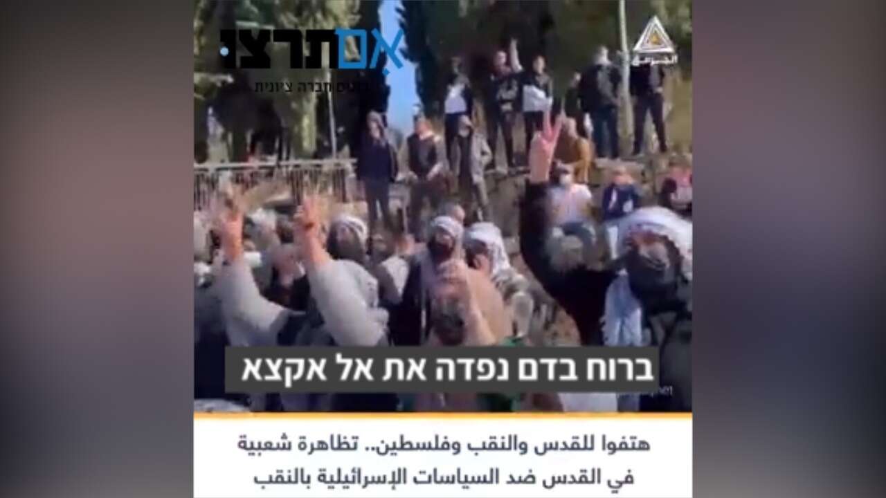 בסרטון שתרגמו חוקרי 'לך ירושלים' ותנועת 'אם תרצו', נצפה השייח' ראאד סלאח יחד עם מפגינים בקריאות 'ברוח ודם נפדה את אל אקצא, מתנחל - לך, האדמה ערבייה וחופשית'.