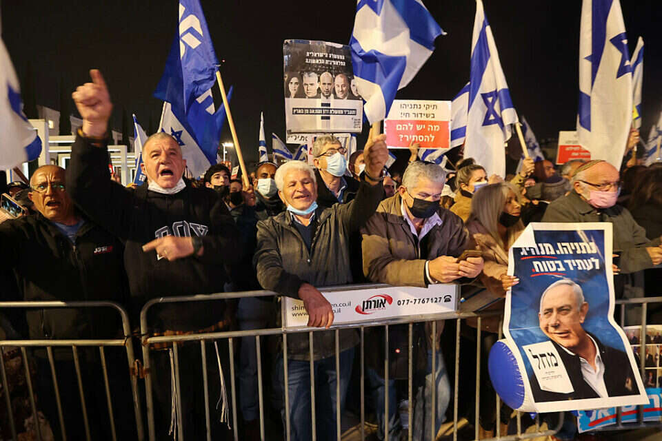 יו"ר האופוזיציה נתניהו אמר בהקלטה שהושמעה בהפגנה: "לא ייתכן שהמשטרה שפעלה בניגוד לחוק - תחקור את עצמה" • ח"כ לוין: "לא יעזרו כל התיקים המומצאים. אנחנו איתך נתניהו"