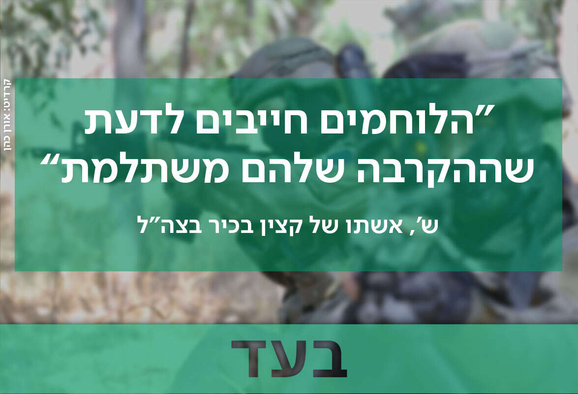 חשוב שהם יידעו שההקרבה היומיומית, הפיזית, הנפשית, והאומץ שלהם בעצם הבחירה בתפקידי לחימה והשירות מסכן החיים גם ישתלמו בסוף, ושאנחנו נחבק אותם תמיד, לא רק כשזה מתאים ונוח לנו.