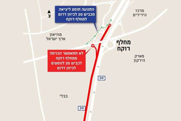 "הכניסה לכביש 20 לכיוון דרום ממחלף ההלכה תתאפשר כרגיל," נמסר מנתיבי איילון, כך שהשיבוש בתנועה יהיה מוגבל לקטע האמור בלבד.