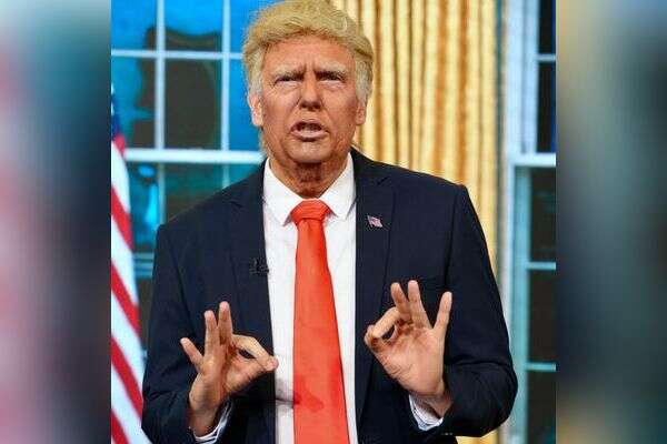 עומר עציון בתפקיד הנשיא דונלד טראמפ מכריז על העברת השגרירות האמריקנית מירושלים - לעיר יבנה.