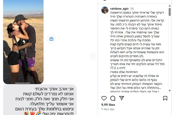 את ההודעה המצמררת, לצד תמונות משותפות ששלח אליה, חושפת ברגישות קשת בפוסט אותו פרסמה, ונפרדת ממי שהיה בן זוגה ממש עד למותו.