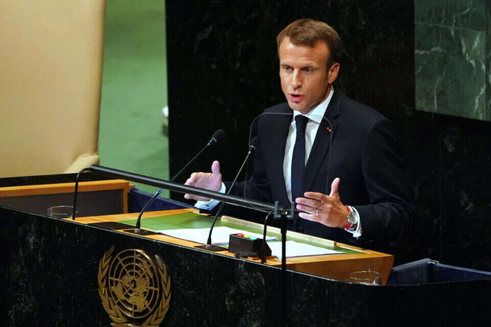 גם נשיא צרפת, עמנואל מקרון, נאם בעצרת האו"ם. הנשיא התייחס למדיניותו של טראמפ לגבי הסכסוך הישראלי–פלשתיני. "רמיסת הפלשתינים ודחיית יוזמות חד צדדיות לא יפתרו את המשבר במזרח התיכון. אין חלופה אמינה לפתרון שתי המדינות".