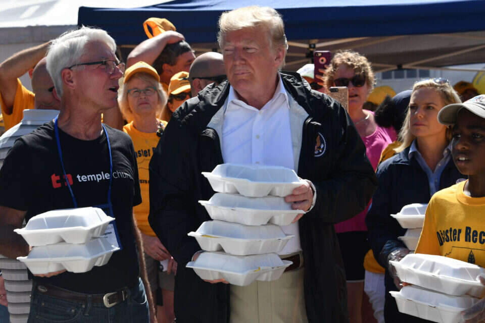 הנשיא טראמפ הצטרף למתנדבים שהשתתפו בפעולות הסיוע בכנסיה מקומית בעיר החוף ניו-ברן שנפגעה קשה מהסופה העוצמתית. "מה מצב הבית?" נשמע טראמפ שואל אדם ששהה בכנסיה. הנשיא הוסיף ואמר: "שמור על עצמך".
