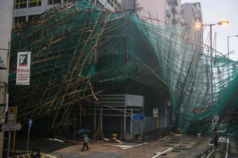 "שמשות מתנפצות בכל מקום, הבית מוצף". הונג קונג, היום // צילום: אי.אף.פי