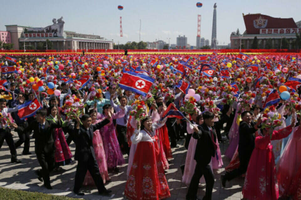 עם פרחים ובלונים במקום טילים: צפון קוריאה ערכה מצעד צבאי