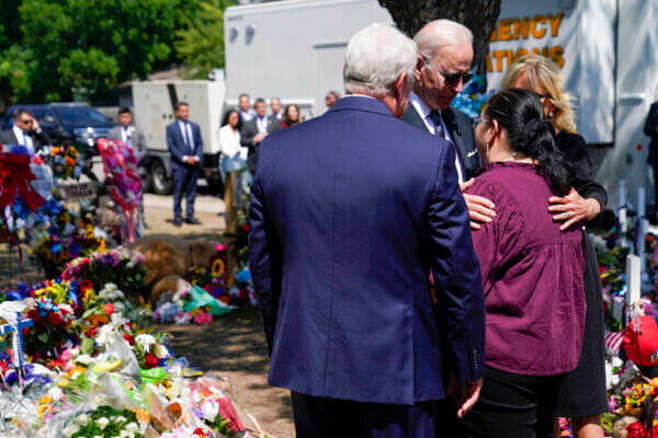 הנשיא ג'ו ביידן ואשתו ד"ר ג'יל ביידן הגיעו לביקור בזק ביום ראשון ליובלדי, טקסס, ימים בודדים לאחר שתושב המקום ירה למוות ב-19 תלמידים ושתי מורות בבית הספר היסודי המקומי.