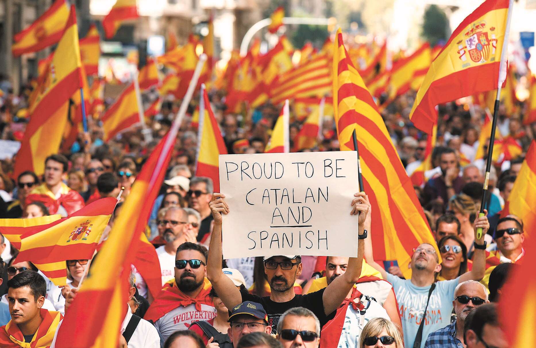 ההפגנות נמשכו גם אתמול, כאשר רבבות ספרדים, ויש האומרים יותר ממיליון איש, הגיעו מרחבי ספרד אל ברצלונה, קיימו הפגנה בעד "שמירה על איחוד ספרד". ההפגנה ההמונית חסמה את רחובותיה המרכזיים של עיר הבירה הקטלאנית, ומשתתפיה הניפו אל על את דגלי ספרד ודגלי קטלוניה. יש שתיארו את המצב בהפגנה כאופוריה. קריאות "ויוה ספרד" ו"ויוה קטלוניה" נשמעו בפיהם, כמו גם "אתם לא לבד" - כשהכוונה למשטרת ספרד ששוטריה נשלחו לקטאלוניה בעת קיום משאל העם ונתקלו בהתנגדות עזה ואלימה, בחלק מהמקרים על ידי האזרחים שתומכים בעצמאות החבל.