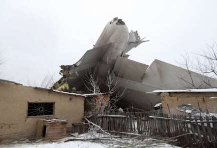 A Turkish cargo jet crashed into a village near Kyrgizstan's Manas International Airport on Monday, killing at least 37 people, most of them residents of the village. According to the airport administration, the Boeing 747 was supposed to make a stopover at the airport, outside the capital city Bishkek, on its way from Hong Kong to Istanbul. It crashed when trying to land in dense fog and poor visibility at 7:31 a.m. The plane damaged 15 buildings in the village, said Mukhammed Svarov, head of the crisis management center at the Emergencies Ministry. Kyrgyzstan's Transport Ministry said there were five people on board. It identified the plane as a Turkish Airlines Boeing 747-400, but the company said it belonged to another Turkish firm, ACT Airlines. "Our TC-MCL signed plane, flying on Jan. 16 from Hong Kong to Bishkek, crashed on landing at Bishkek at the end of the runway for an unknown reason," ACT Airlines said in an emailed statement. "Our condolences to the families of those who have lost their lives in the tragic incident involving an ACT Airlines aircraft in Kyrgyzstan," Turkish Airlines said on its Twitter account.