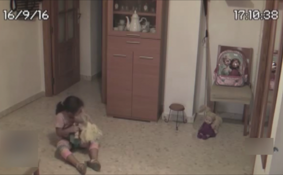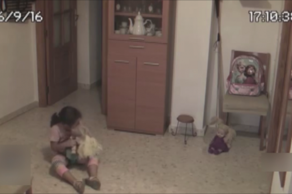 הילדה תועדה לבדה בביתה עם חפצים זזים, מצד ימין הבובה ה"חיה" // צילום: מתוך יוטיוב // הילדה תועדה לבדה בביתה עם חפצים זזים, מצד ימין הבובה ה"חיה" // צילום: מתוך יוטיוב