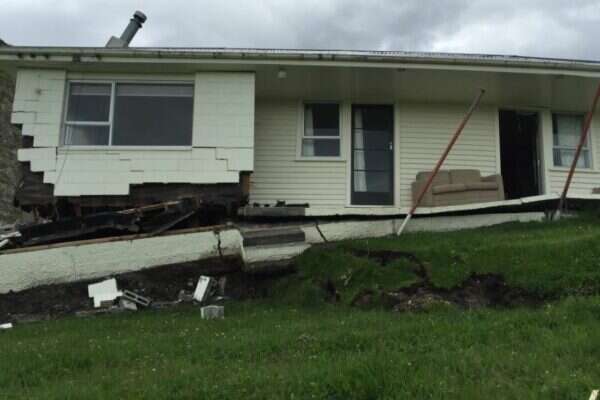 אחד הבתים שניתק מיסודותיו ונע כ-10 מטרים // צילום: טוויטר