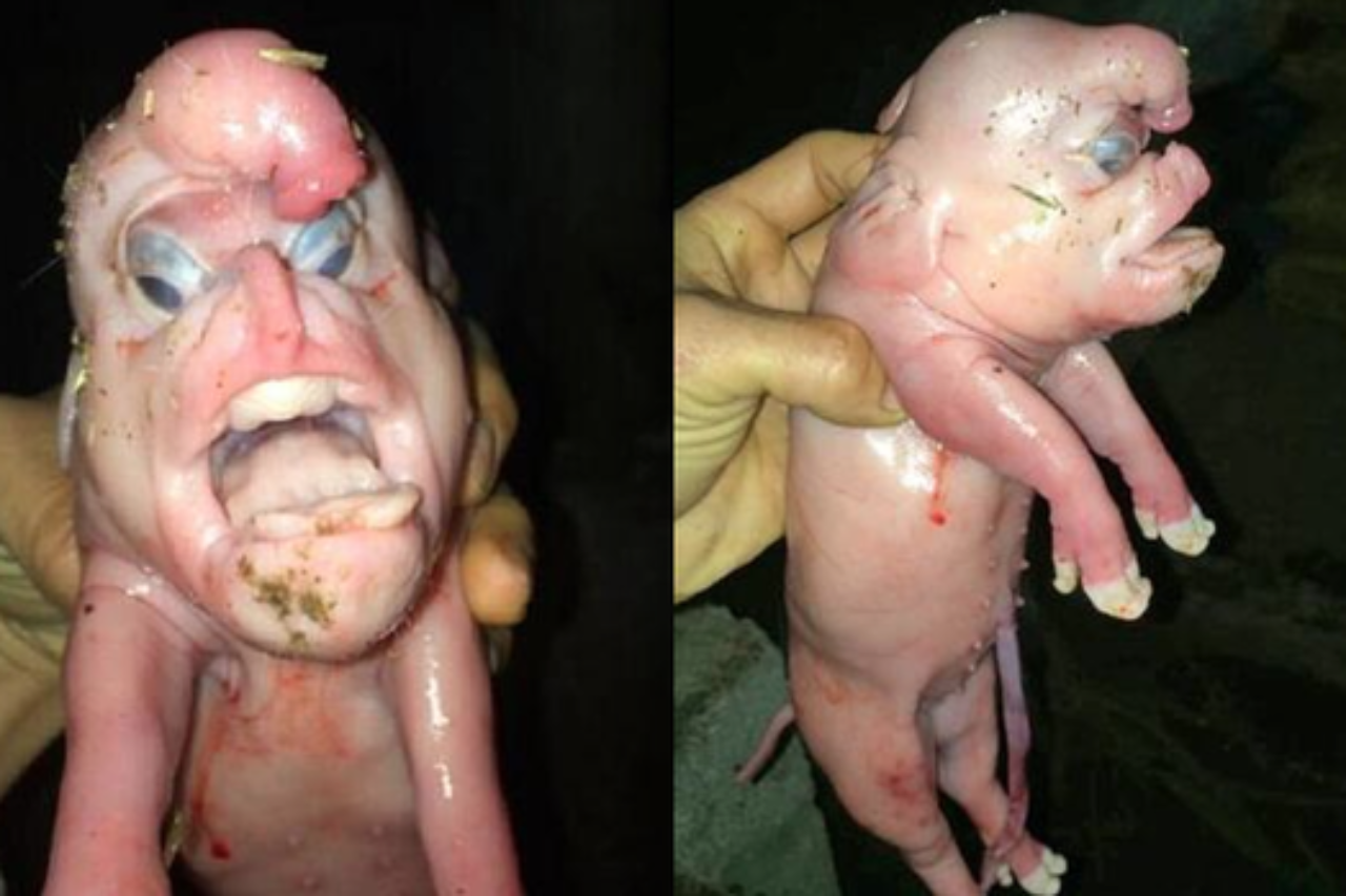 החזיר הזה לא יופיע בסרטי ילדים: תמונות וסרטון וידאו של חזיר שנולד עם פנים אנושיות משהו, ובליטה מוזרה שתלויה לו מהמצח, הגיעו לידי העיתונים הבריטיים "המירור" ו"הסאן", שדיווחו על המקרה הביזארי.