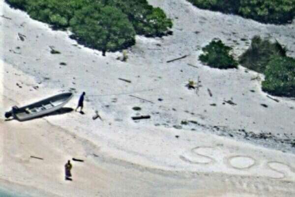 הזוג נופף לעבר המטוס שצילם אותם, את סירתם ואת קריאת ה-SOS באורך שישה מטרים שכתבו על החול. מצלמת המטוס תפסה גם מבנה ארעי שבנו לעצמם לשם הגנה מנזקי מזג האוויר.